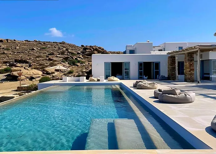 Die Kalafi Home In Mykonos Panormos liegt in ca. 3 km Entfernung vom Archäologischen Museum von Mykonos und bietet Zugang zu verschiedenen Sehenswürdigkeiten in der Umgebung. Die Villa in Panormos verfügt über ein privater Autoparkplatz und eine Terrasse mit Aussicht auf den Garten.